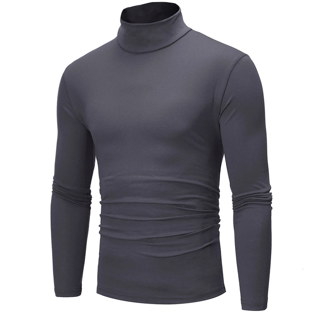 Мужской модный однотонный свитер с длинным рукавом и высоким воротником Топ 2021 футболка