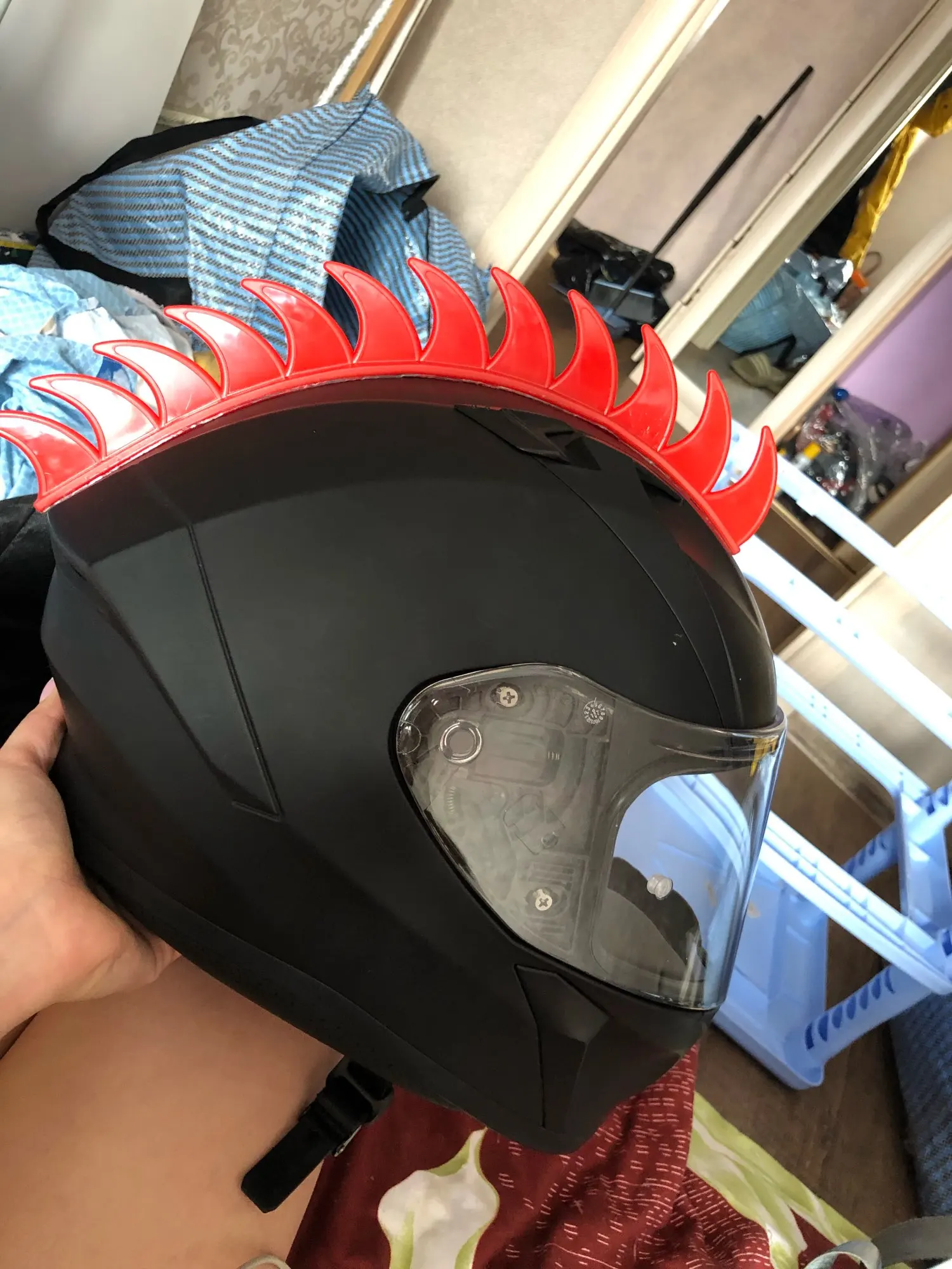 Посылка включает в себя:1 * резиновая мохокс полоса (с двухсторонней лентой)** Шлем в комплект не входит **