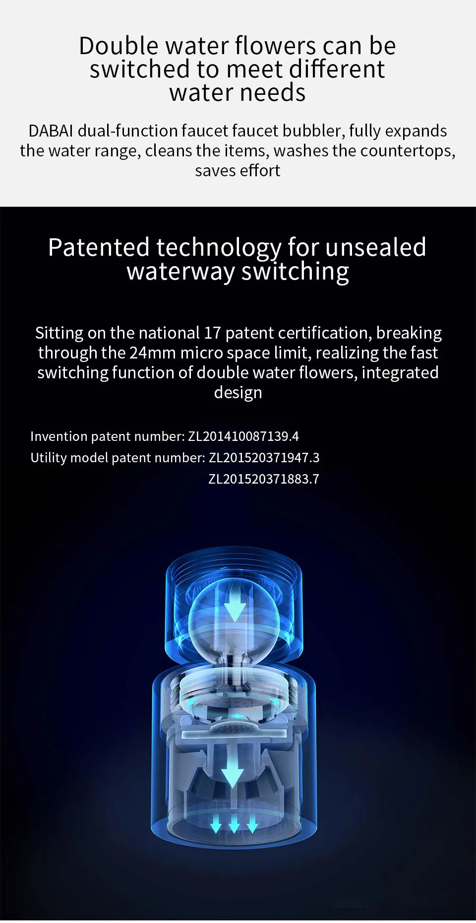Аэратор для кухонного крана Youpin Dabai, оригинальная насадка для крана, барботер, водосберегающий фильтр, 360 градусов, двойная функция, 2 потока