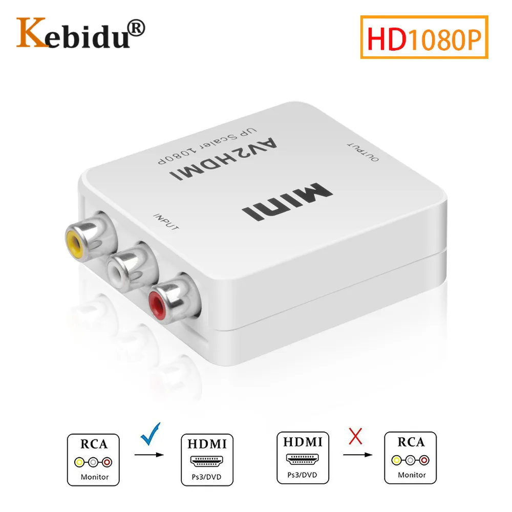 Kebidu Mini Composite AV CVBS к HDMI-совместимому аудиоконвертеру HD 1080P RCA штекер-гнездо AV2HDMI коммутационная коробка