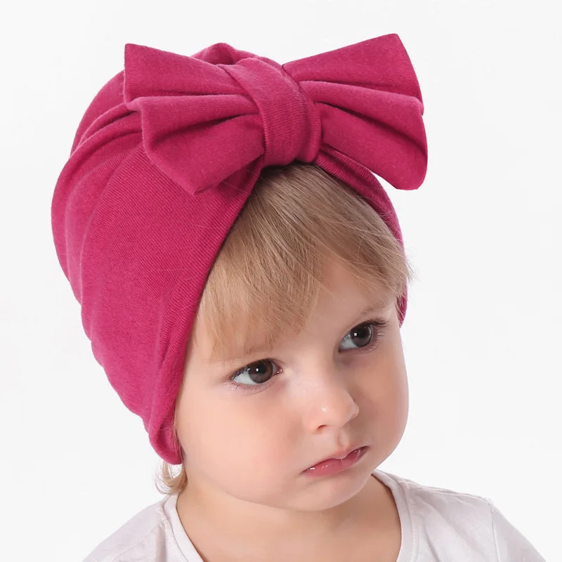 Модная осенне-зимняя теплая шапка для младенца эластичные повязки на голову с большим бантом хлопковая детская шапочка головной убор Детские аксессуары для волос