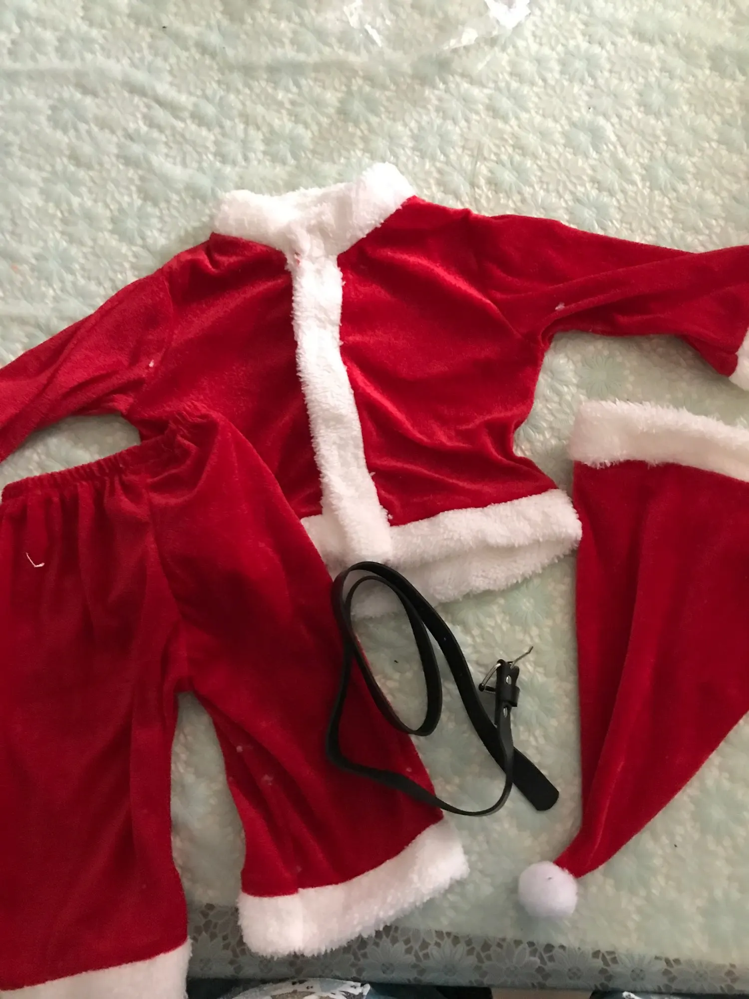 Качество конечно оставляет желать лучшего, тонюсенькая синтетика, но пришло два костюма, шапочка, ремень, штаны и кофточка.