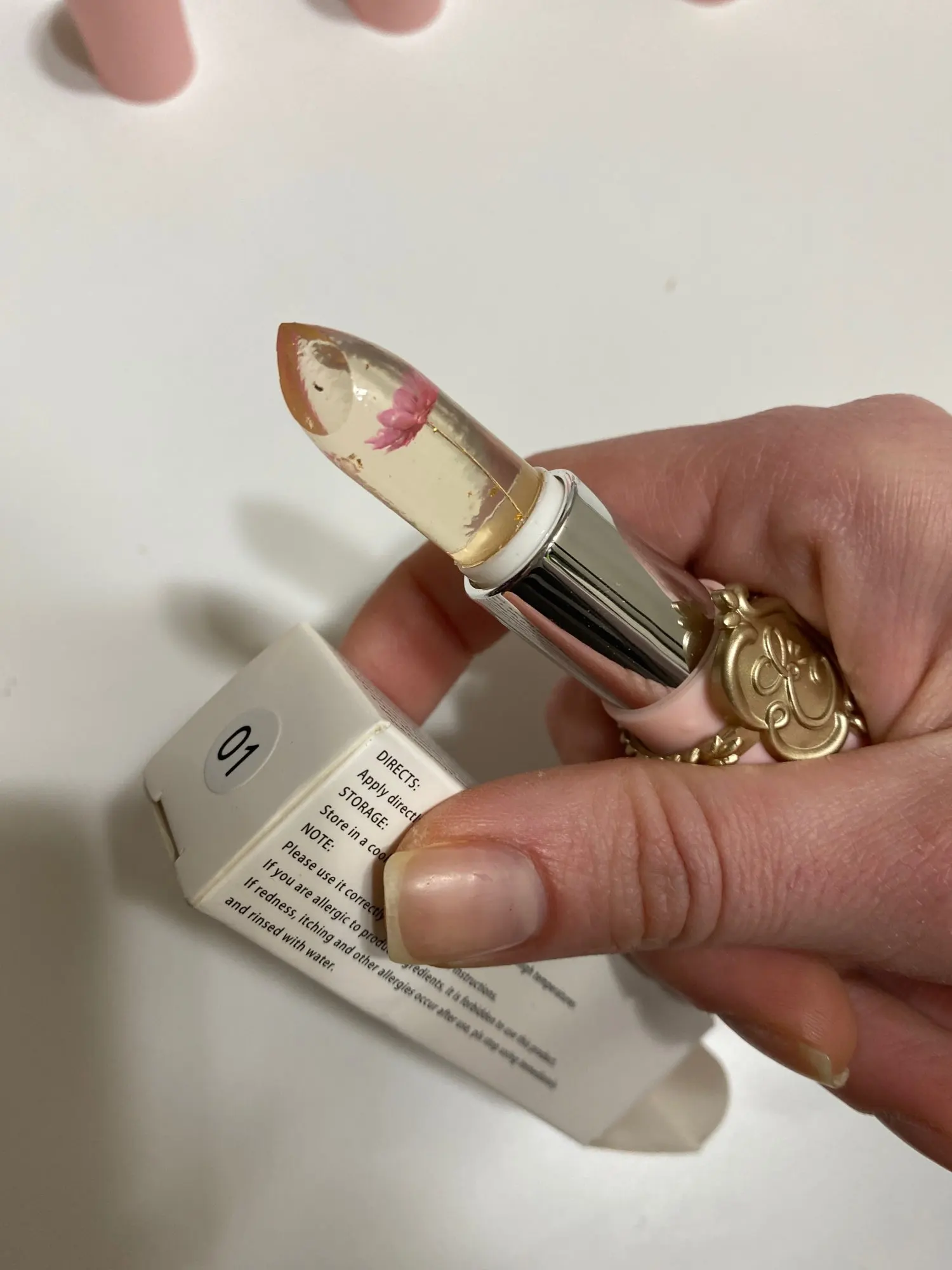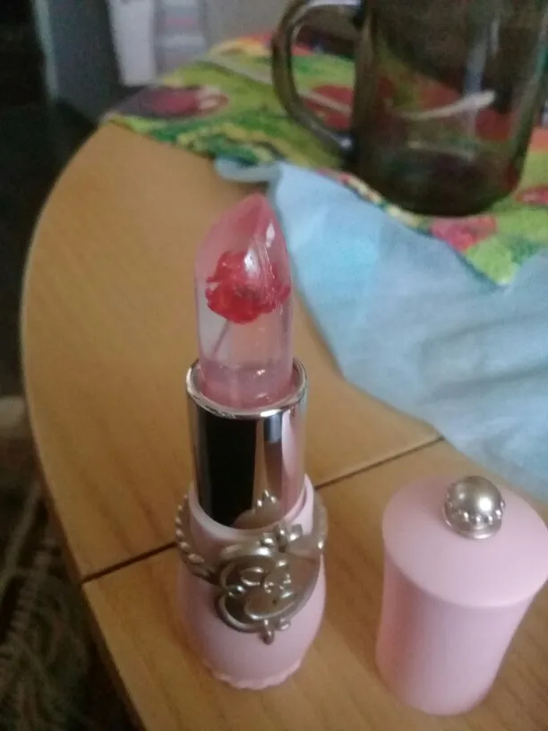 На губах еле пахнет, но приятно, а сама помада пахнет немного не камельфо, прям чуть-чуть, не знаю в чём прикол. Думала будет бесцветным, но есть небольшой красноватый оттенок, камера плохо зафиксировала цвет. Рекомендую, да.