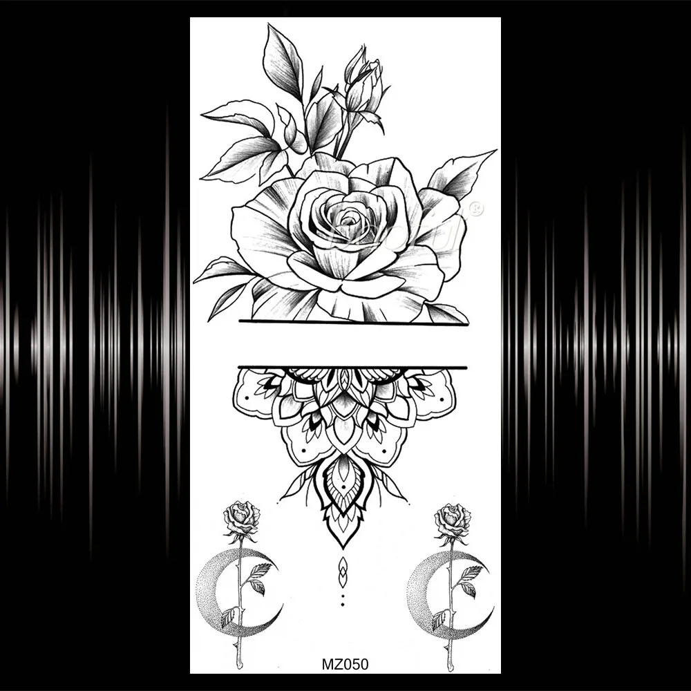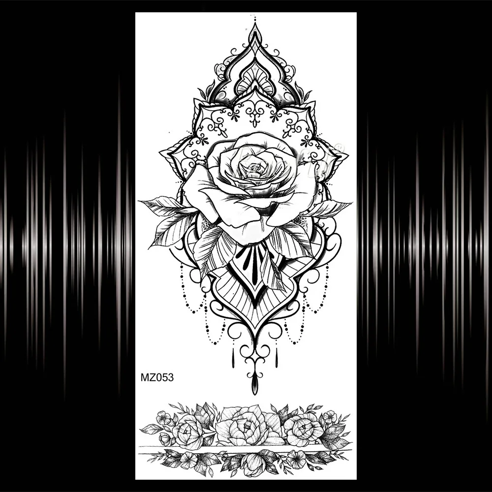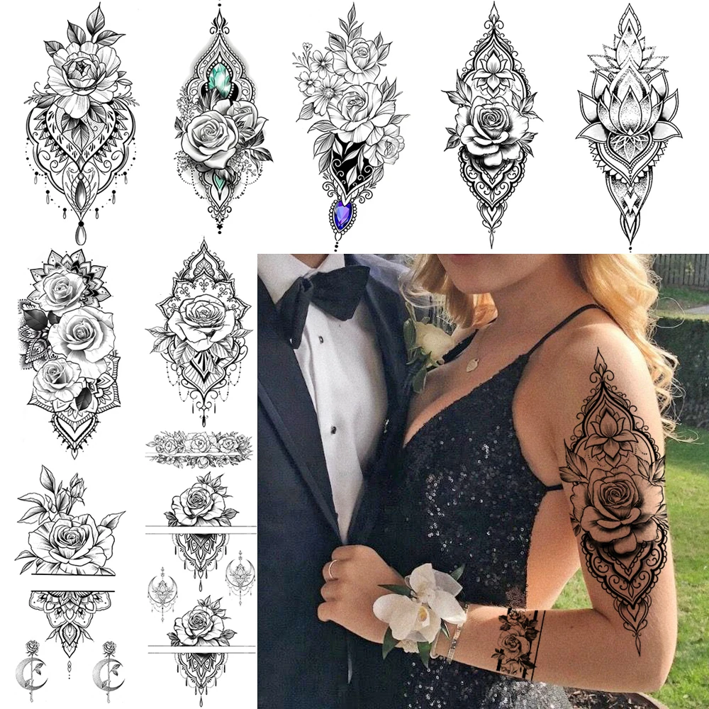 Черная кружевная хна временная татуировка наклейка для женщин поддельные ювелирные изделия браслет татуировки переводные розы на запястье рука татуировки