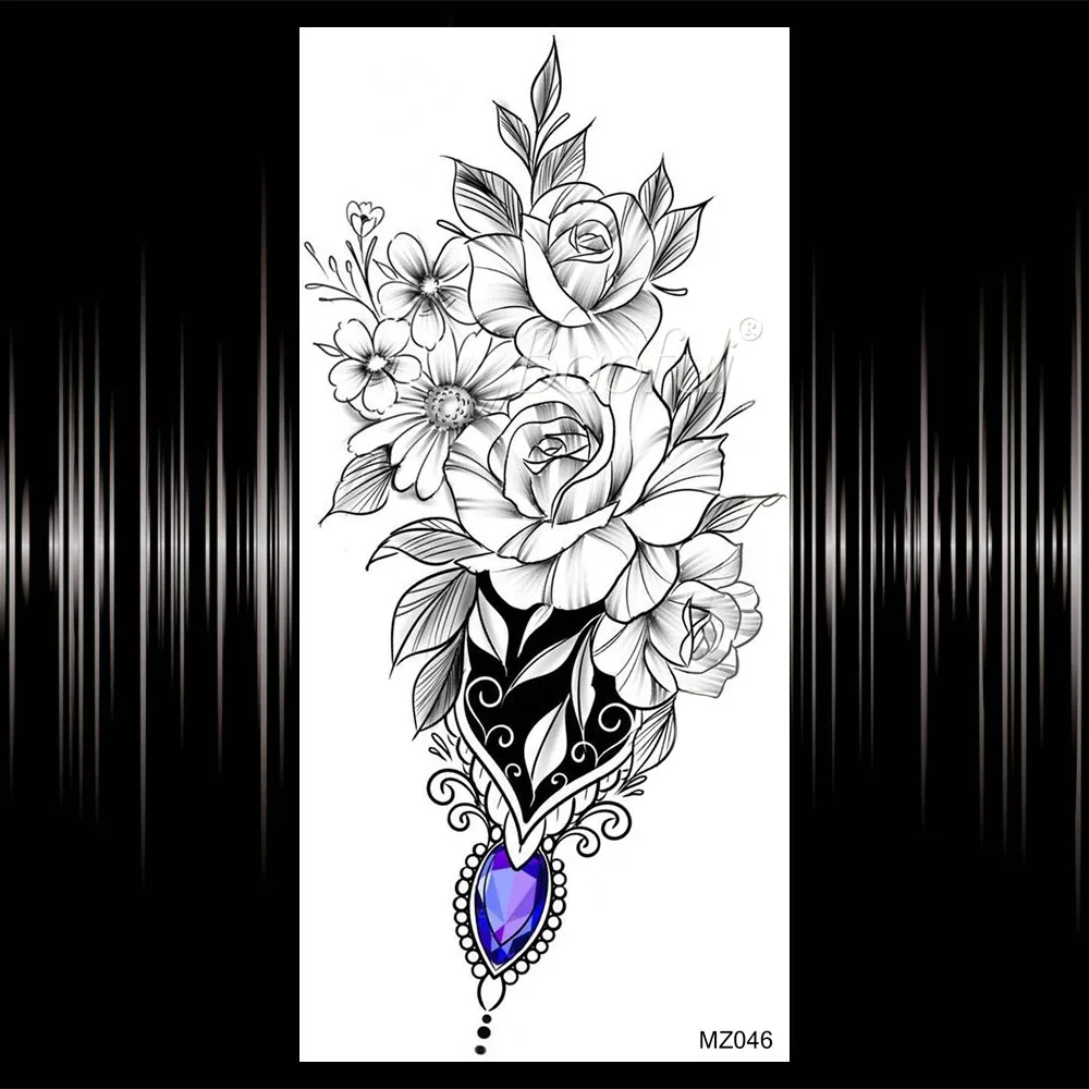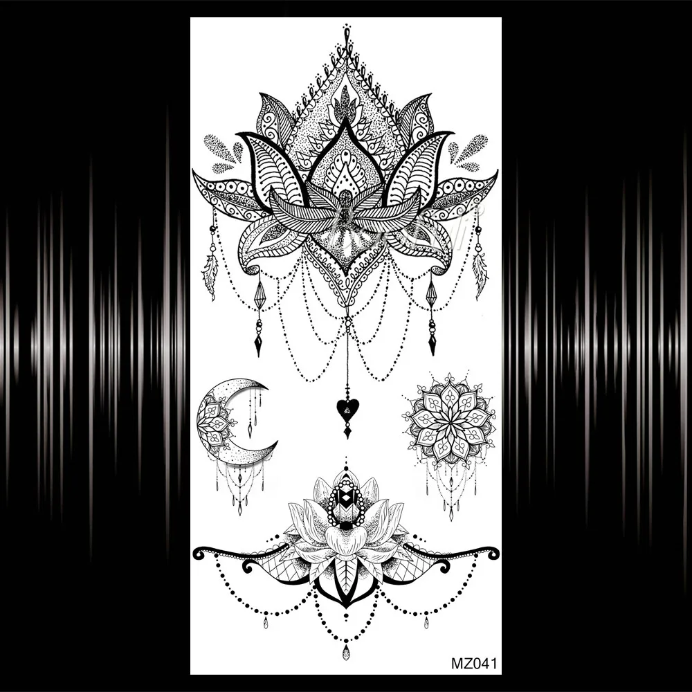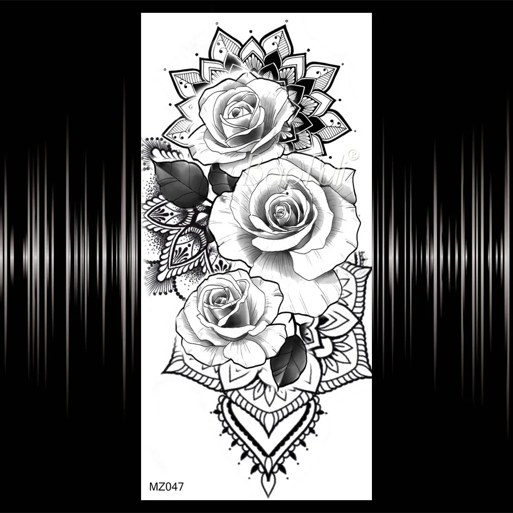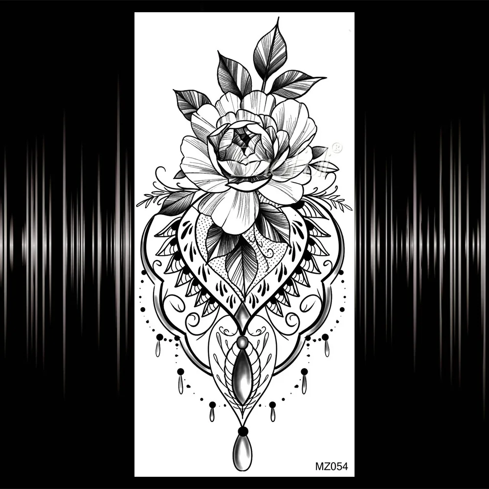 Черная кружевная хна временная татуировка наклейка для женщин поддельные ювелирные изделия браслет татуировки переводные розы на запястье рука татуировки