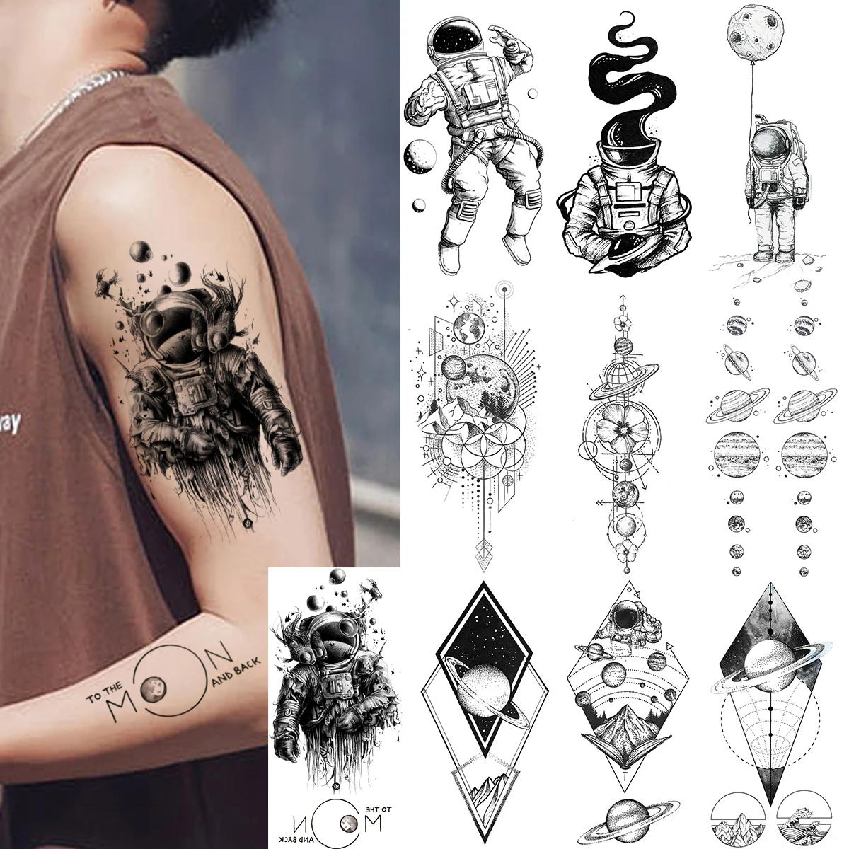 Водостойкие реалистичные татуировки для мужчин, женщин, мужчин, временные татуировки космонавта, планет, Вселенная, земля, космонавт, боди-арт, татуировки