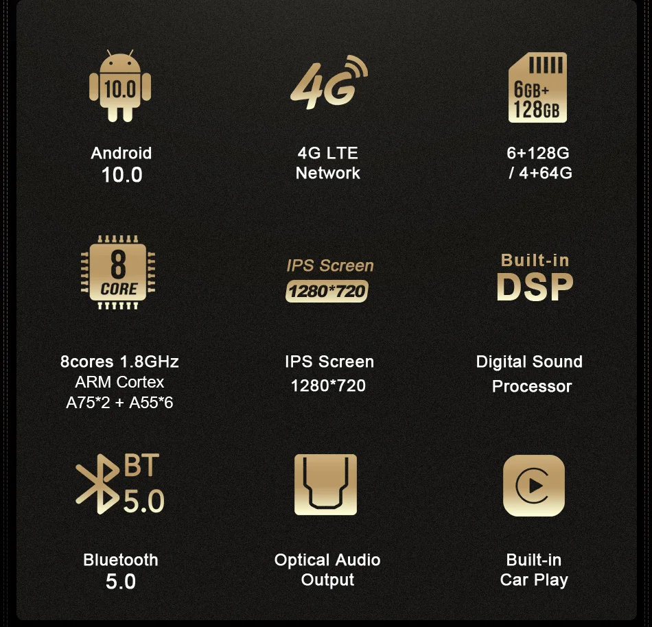 K6 Plus 64G --- UIS7862 | Android 10,0 |8 ядер(A75 * 2 + A55 * 6)| 4G + 64G | 2.5D + IPS1280*720| Радио 7708 | Усилитель 7851L