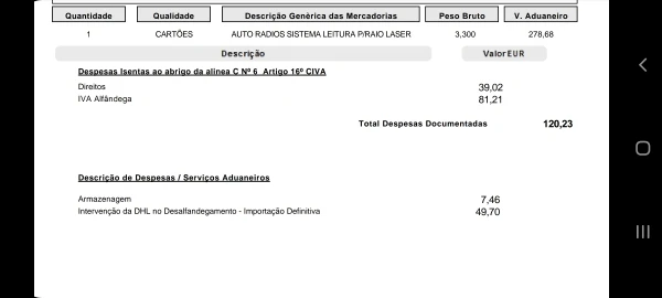 Был очень плохой опыт продавца, потому что по контракту DHL, которая относится к подлинным ВОРАМ, когда я платил 190 евро службой очистки. Потрясающе, как сделано с таможней португальский только для того, чтобы оставить там товар, хранящийся, и мы оплачиваем услуги. Не рекомендуется DHL и для меня никогда Служба доставки, которую продавец