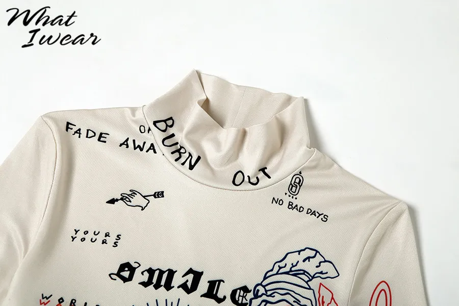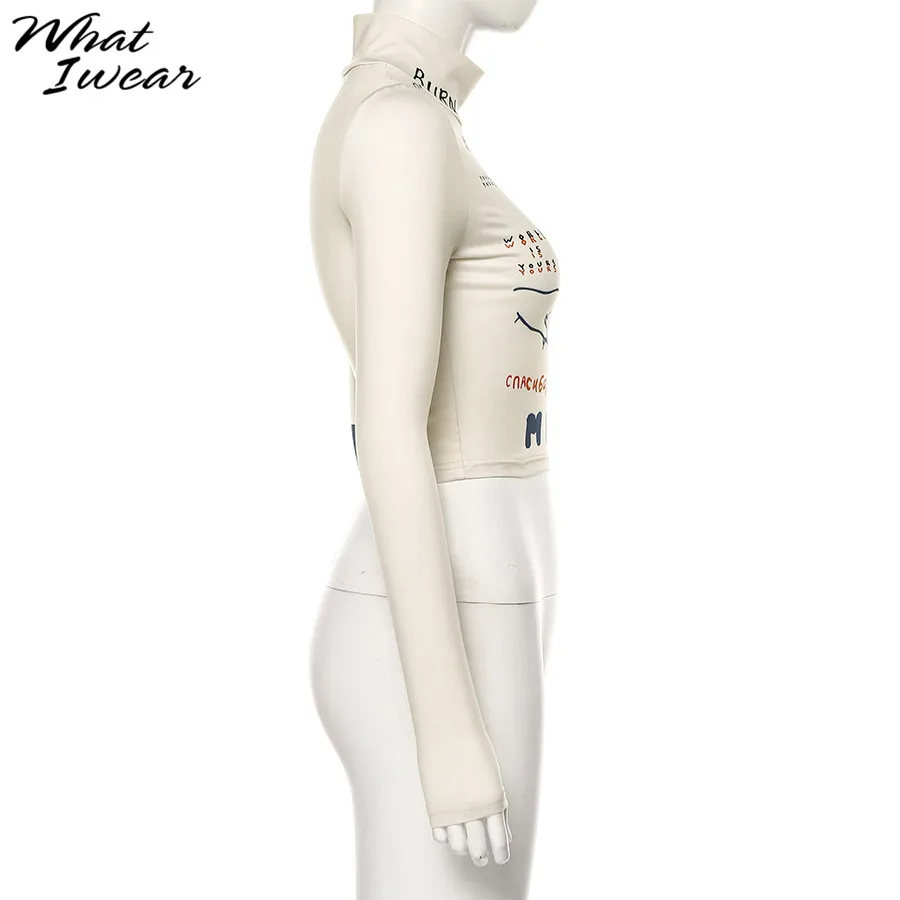Осенняя водолазка с принтом и длинным рукавом, эластичная женская футболка, обтягивающие укороченные топы, повседневные Модные женские футболки с графическим принтом