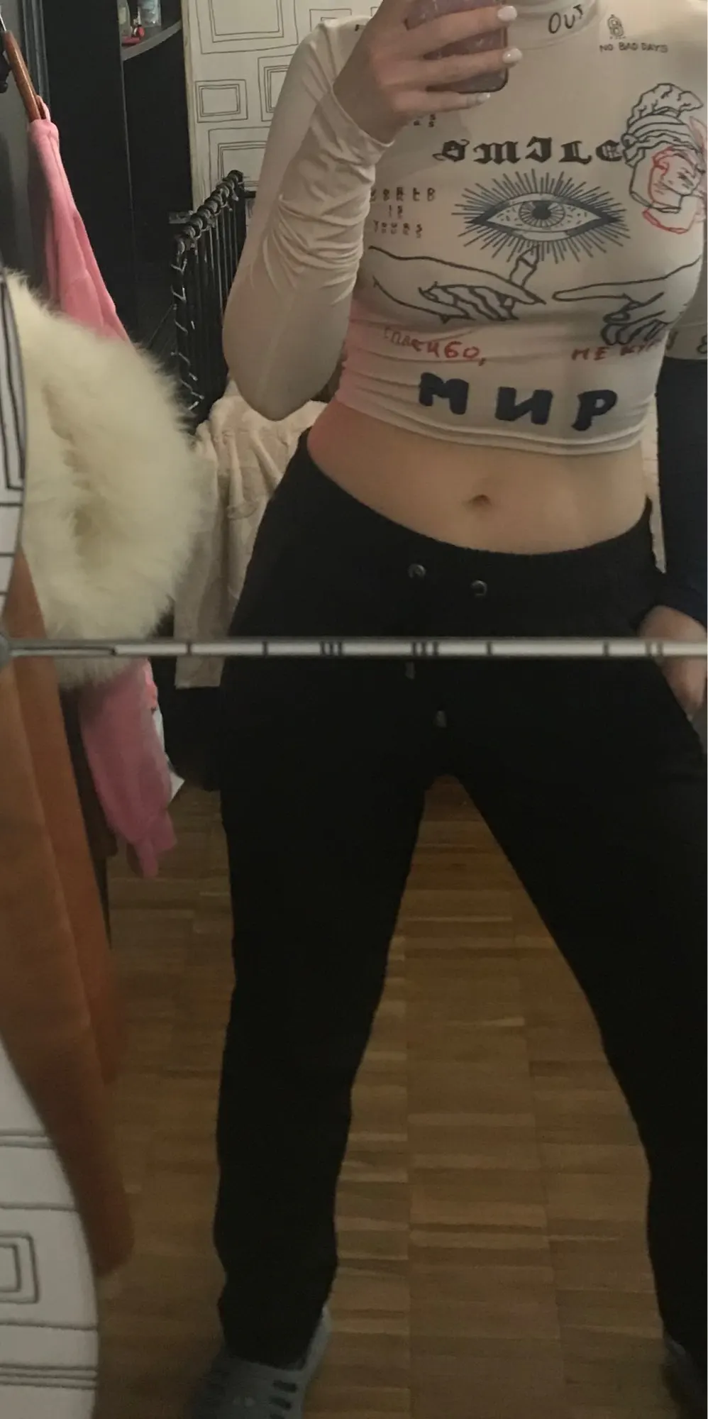 Заказывала S , но как будто XS . Товар хороший, ношу. Очень оригинальный принт, мне нравится. Немного просвечивается, но это совсем чуть-чуть, даже не видно. Слегка сковывает движения, но это из-за того что я прогадала с размером. Короче вещь нравится. Ткань кстати хорошо тянется, так что не бойтесь, если на первый взгляд вам кажется что вещь маленькая