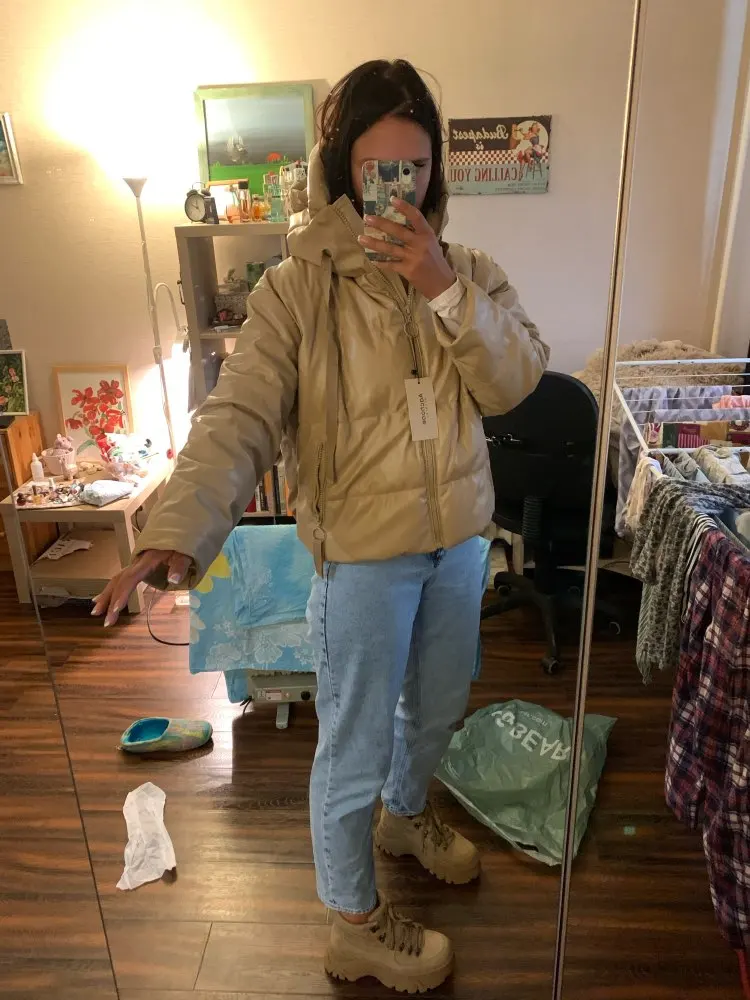 Куртка просто пушка. Никакими рыбами не пахнет, на рост 178, веч 75 села идеально. Идеальный оверсайз. Не много, не мало. Очень тёплая, фурнитура хорошая продавец зачем-то советовал хs , но я ему не поверила и заказала Л. Под мои параметры идеально. Лучший пуховик моей жизни