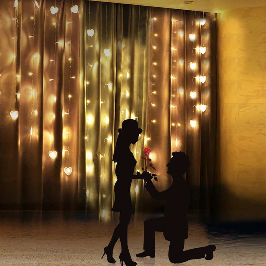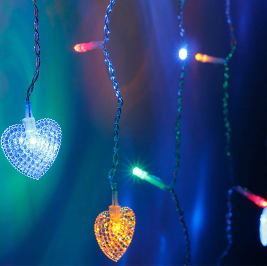 Рождественская светодиодная гирлянда в виде сердца, 2*1,5 м, 8 режимов