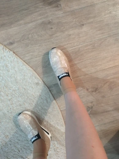 Товар пришел в течение трёх недель до Курска, упаковка без повреждений, кроссовки как в описании, размер идеально подошёл, но маломерки, необходимо правильно подбирать размер, лёгкие, мягкие, очень удобные, блёстки могут незначительно осыпаться , рекомендую, трек отслеживался!