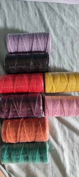 Hilo de tamaño exacto a la descripción, el color es muy bonito y es de tacto suave. Ideal para trabajos de macramé.