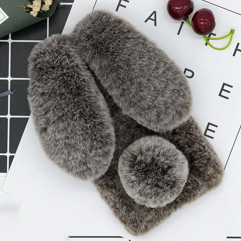 Теплые плюшевые чехлы с кроличьим мехом и бриллиантами для телефоно...