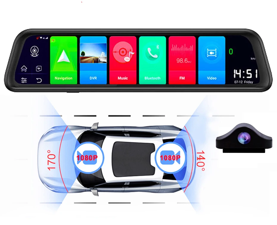 Зеркало заднего вида с камерой заднего вида, 12 дюймов, 4G, Wi-Fi