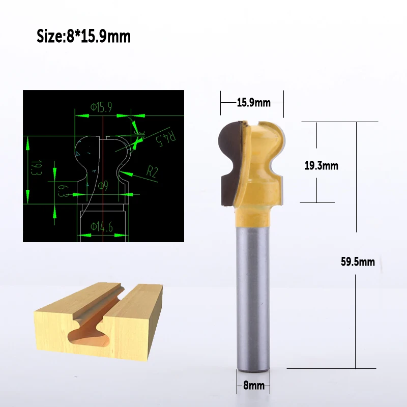 Фрезы по дереву CHWJW классические с двумя пальцами, хвостовиком 8 мм, 12 дюйма, C3, карбидные, для выдвижных ящиков, Деревообрабатывающие инструменты, 1 шт.