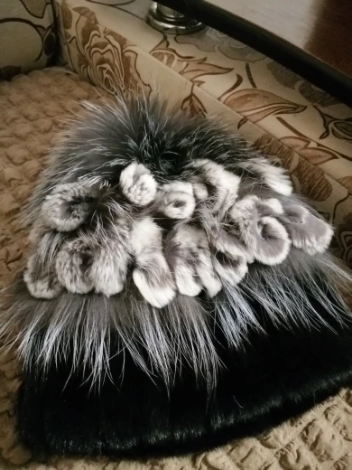 Нормальная шапка. Почти как на фото. Песца меньше, чем на фото. Шапка глубокая, может пойти до 60 размера.На московскую зиму в метро, транспорте. Теперь минус. Черный мех не норка, это кролик. Этот мех мягкий, не колючий как мех норки. Даже не похож на летний мех с живота самочек норки. В подарок продавец прислал брелок из настоящего меха норки. Заказ продавец отправил через неделю, после моего напоминания о заказе. До ЦФО заказ дошёл недели за 2-3.