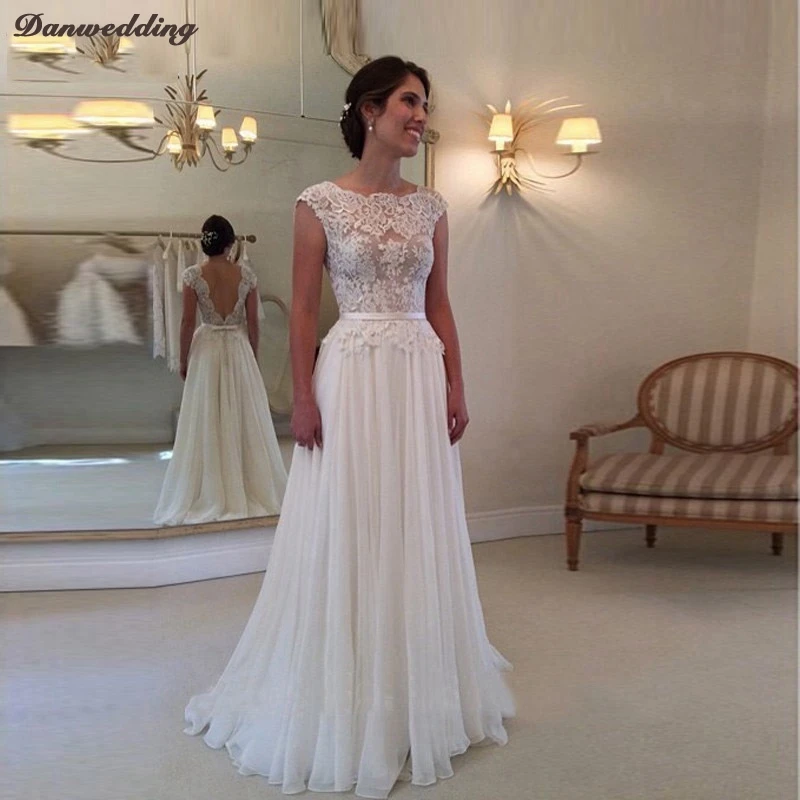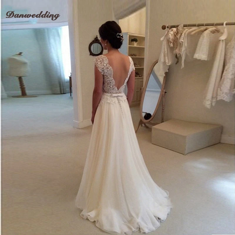 Простое шифоновое свадебное платье с зубчатым воротником, сексуальное изысканное кружевное атласное платье со шлейфом и открытой спиной