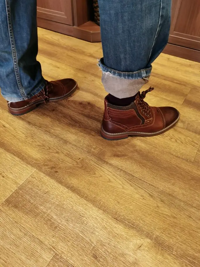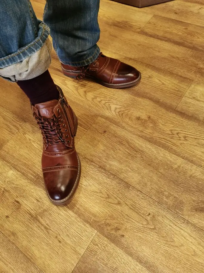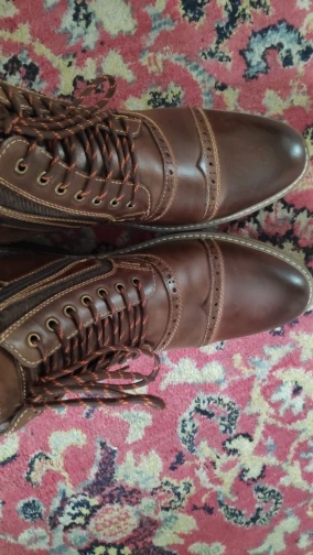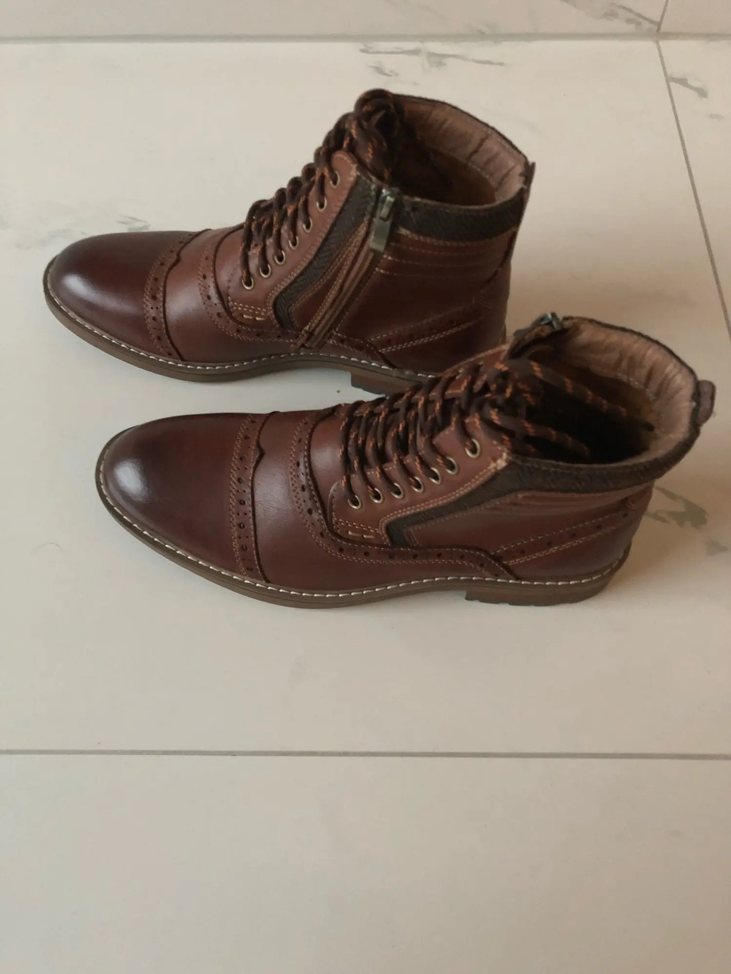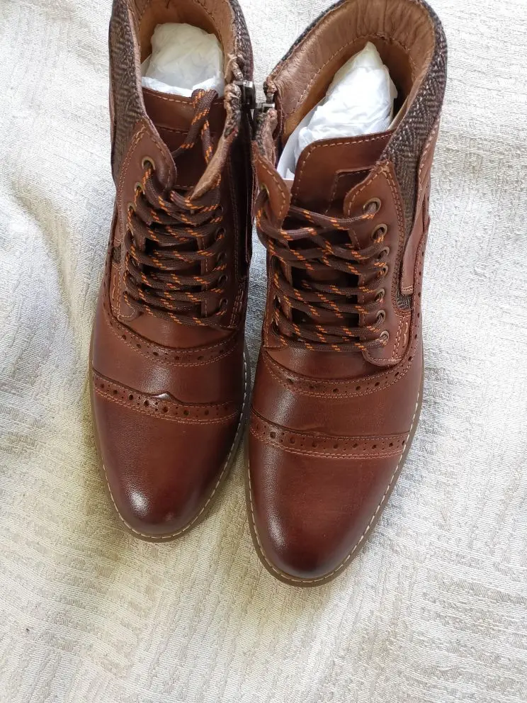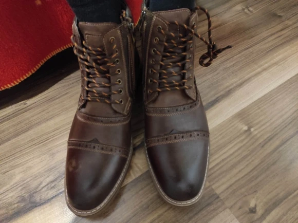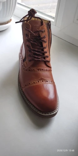 Очень доволен покупкой. Это очень хорошо сделано и красивое качество. Заказанный размер 10, который был на полразмера больше. При заказе на 1-2 размера больше, если вы хотите немного больше места или носить толстые носки, но в противном случае вы не сможете пройти эти очень хорошие ботинки, настоятельно рекомендуем их