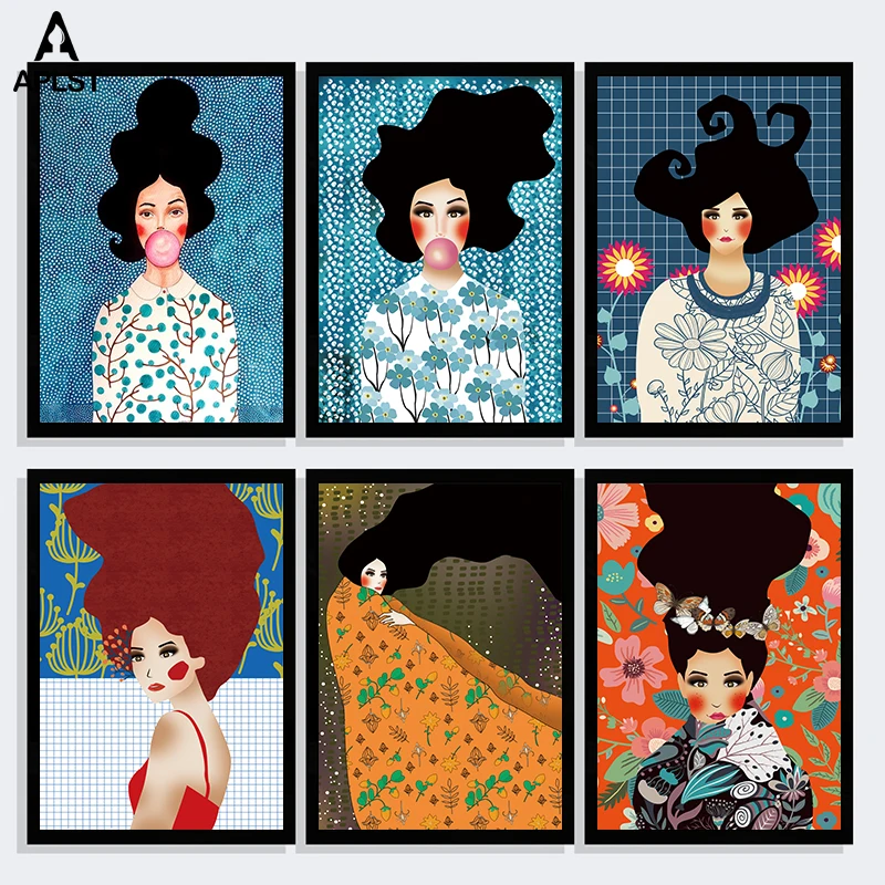 Женские постеры, винтажная картина в виде жевательной резинки для девушек, Женская картина, печать на стене, декоративная картина для гостиной
