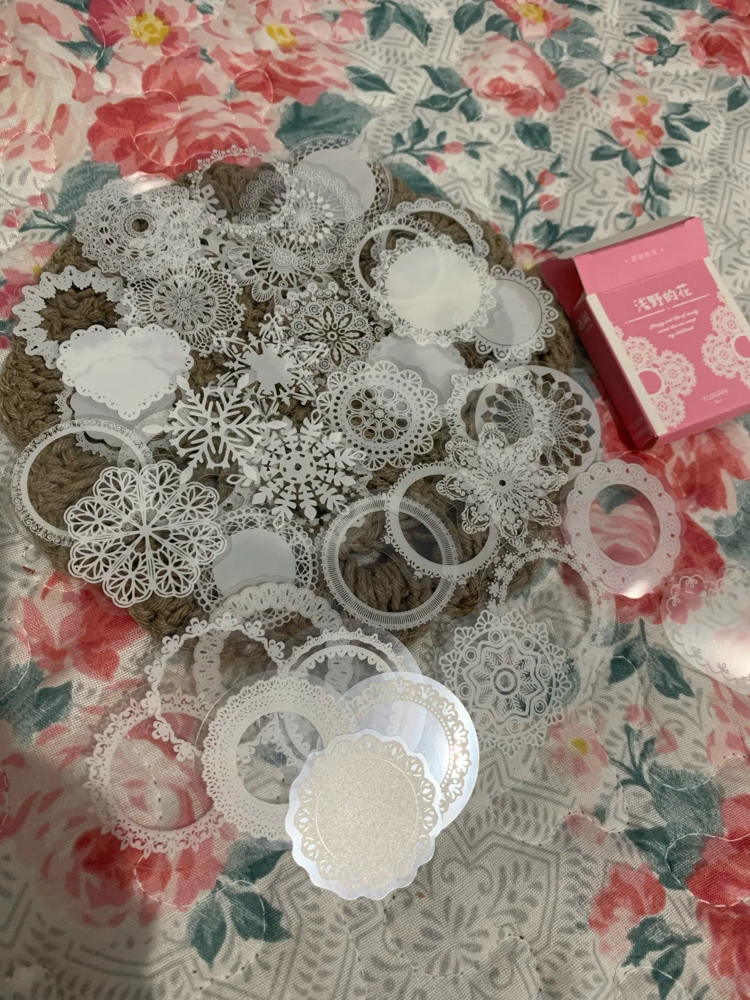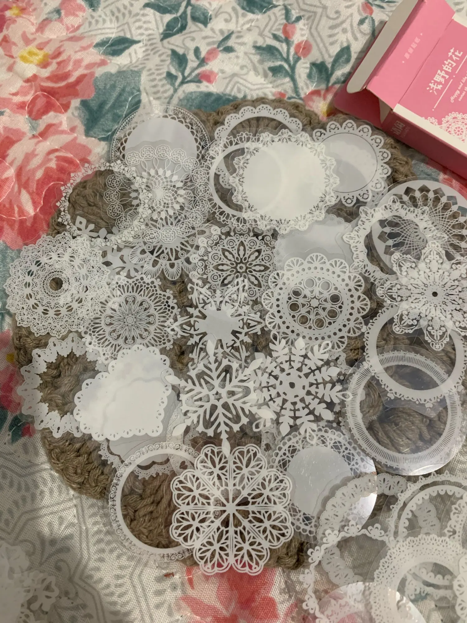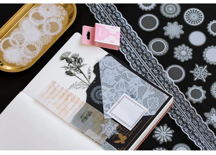 Белые кружевные наклейки, 50шт.упак., милые украшения в коробке, планировщик для скрапбукинга, Канцтовары, японские наклейки для дневника