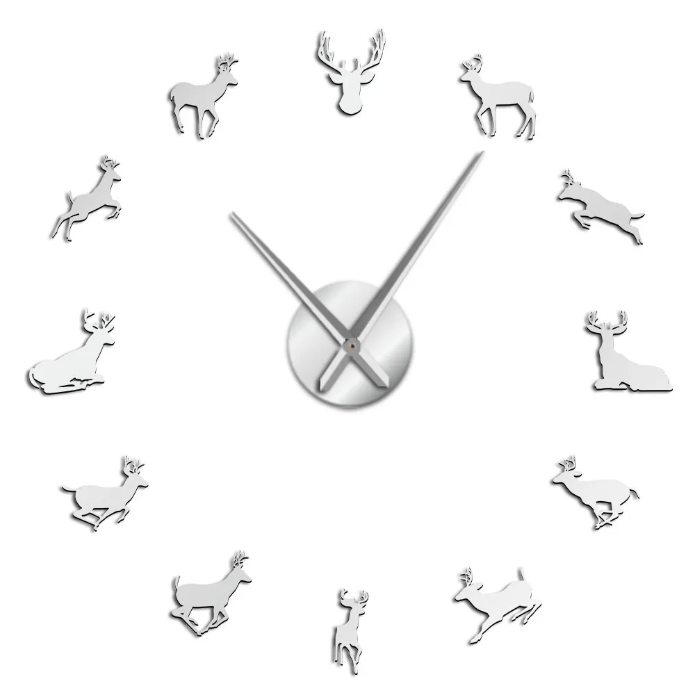 Настенные часы сделай сам с головой оленя, гигантские современные акриловые украшения для дома с изображением леса, оленя, охотника, оленя, рогов