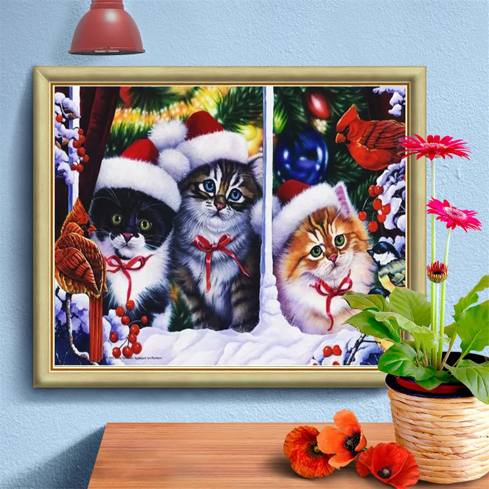 Полноразмернаякруглая алмазная живопись кот 5DIY, алмазная вышивка,...