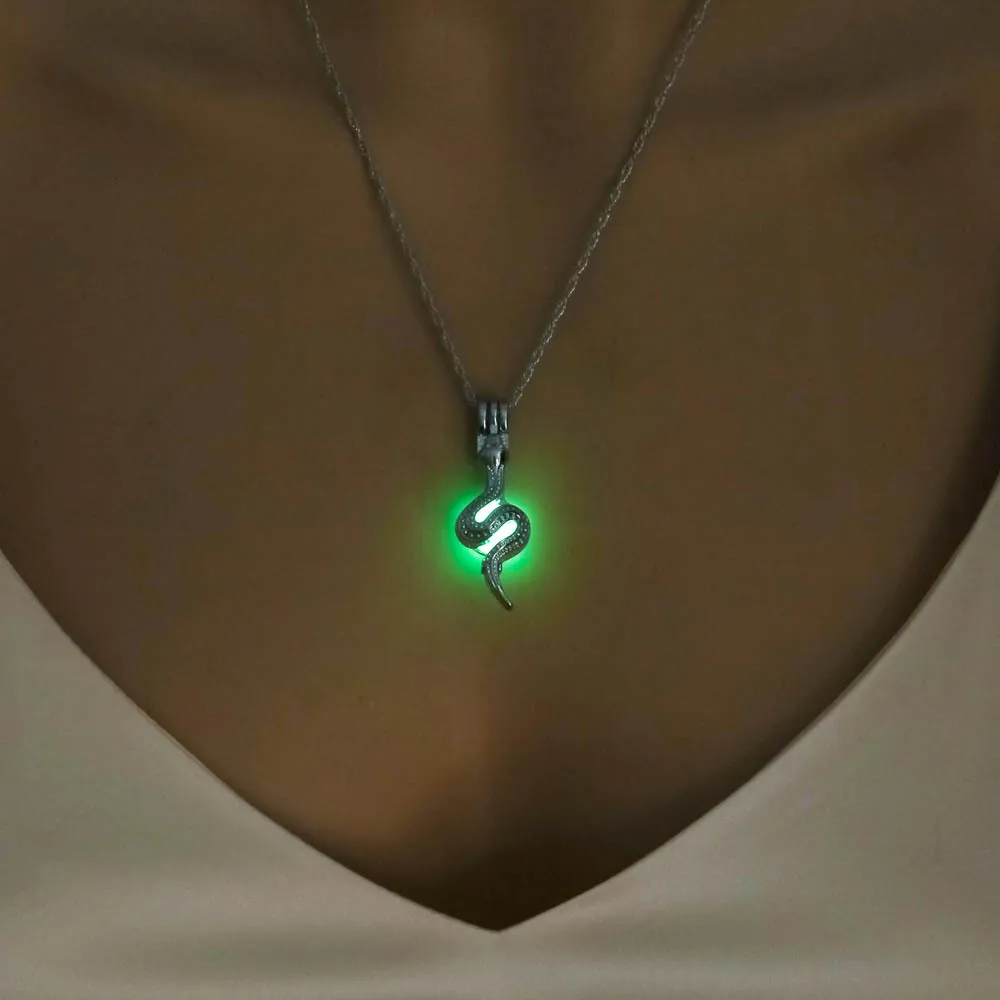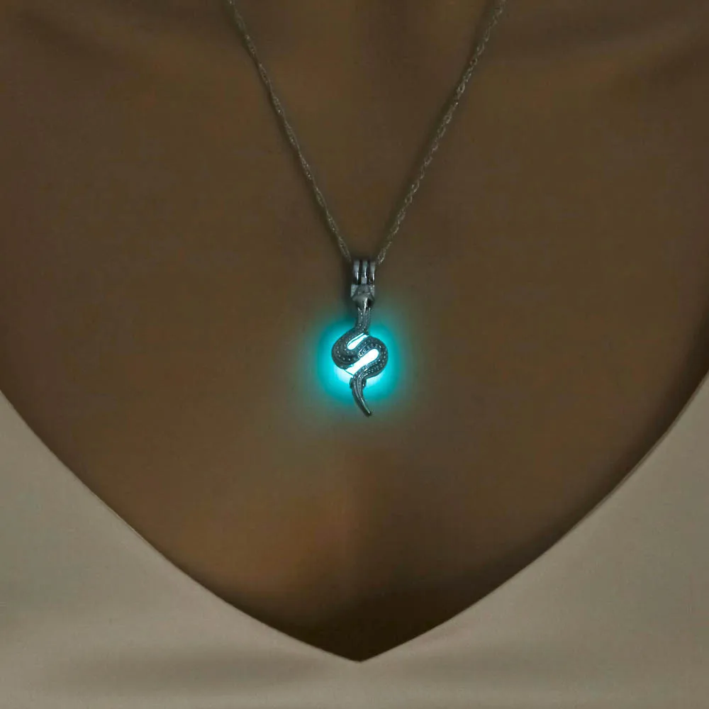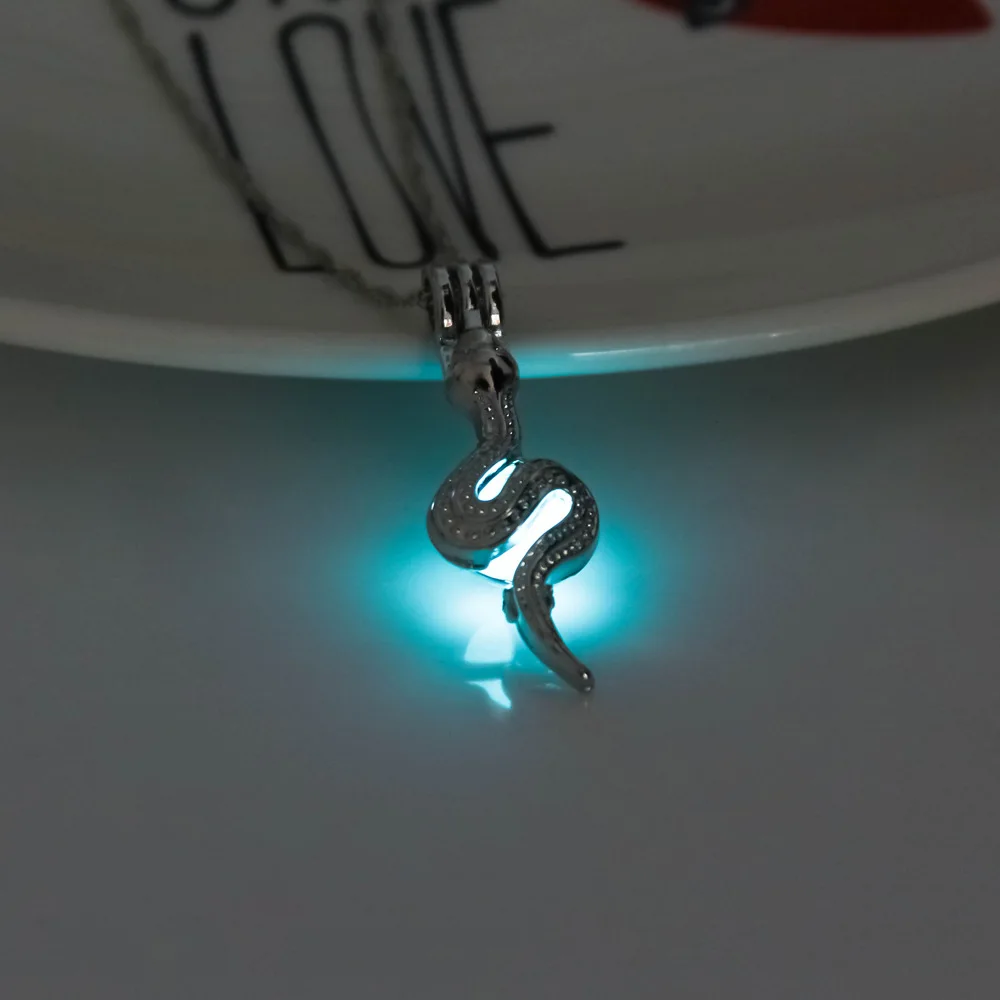 Стимпанк стиль ювелирные изделия с серебряного цвета в форме змеи светящийся медальон светится в темноте кулон ожерелье для мужчин подарок
