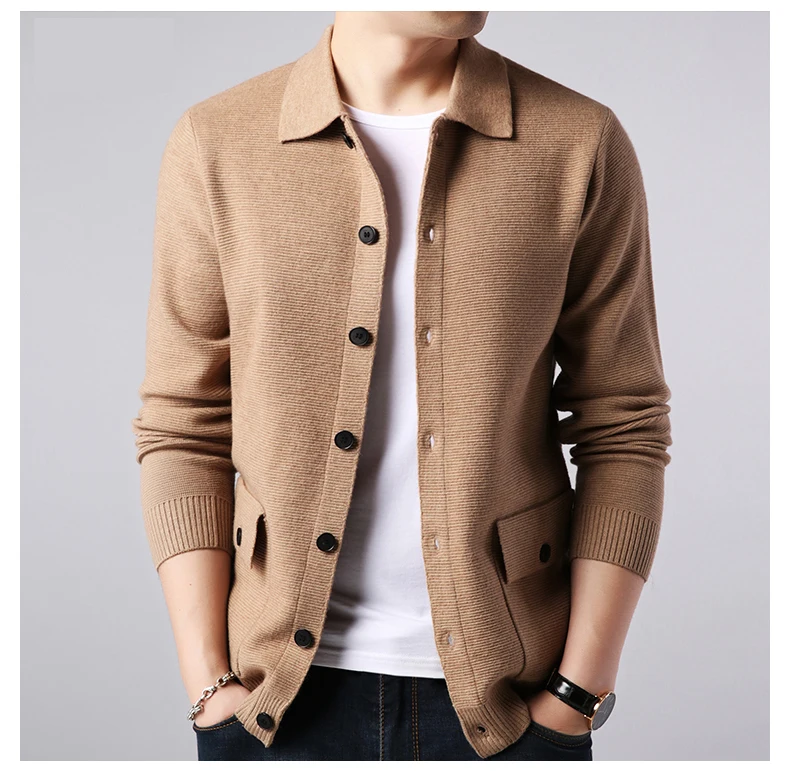 Мужской вязаный кардиган MIACAWOR, Осенний приталенный свитер из хл...