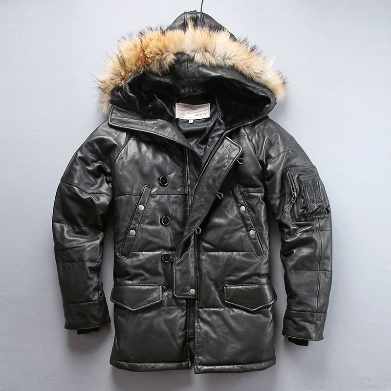 Куртка AVFLY мужская длинная из овечьей кожи, толстый пуховик, теплая куртка из русской кожи, черный цвет, европейские размеры, зима 2019