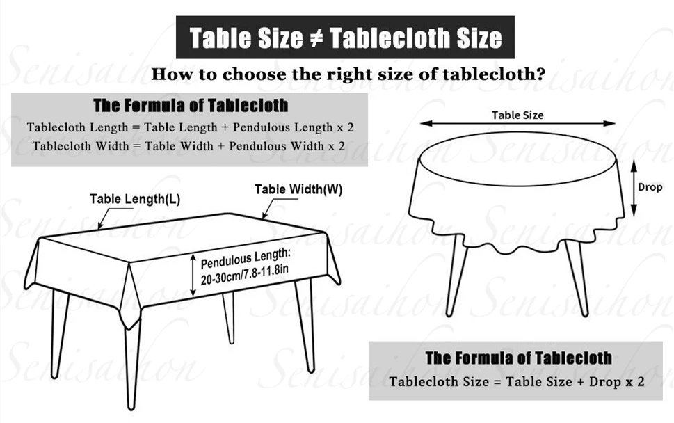 Длина стола + 25/30 см x 2 = скатерть длина