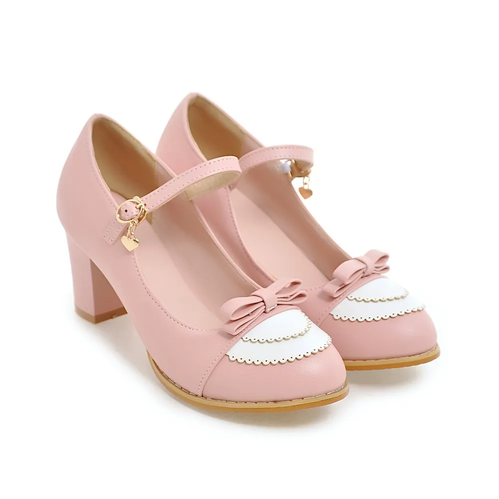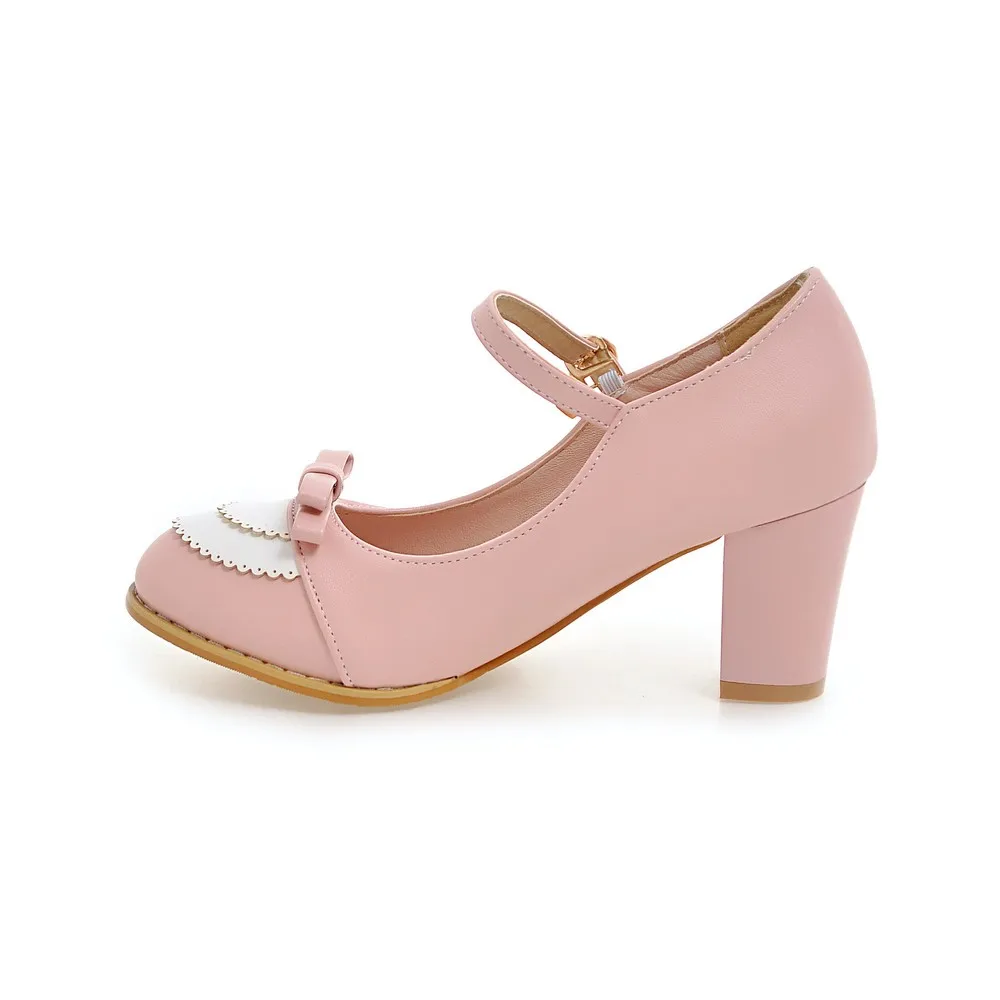 Женская обувь на каблуке обувь в стиле Лолиты на каблуке розовая Женская обувь для учащихся японские туфли на среднем каблуке с бантом