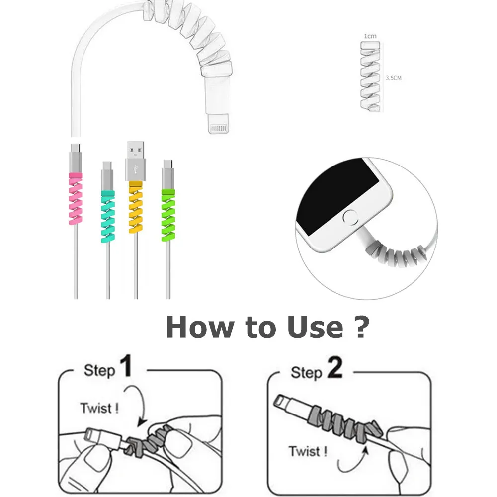 Спиральный протектор кабеля, пряди передачи данных для iPhone, iPad, Samsung, Xiaomi, Huawei, зарядка через USB, наушники, силиконовая защитная намотка