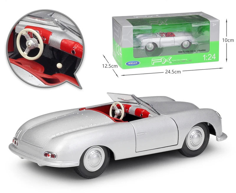 WELLY литая модель автомобиля МАСШТАБА 1:24 классический Кабриолет 1948 Porsche 356 металлический спортивный автомобиль из сплава игрушечный автомобиль для детей Коллекция подарков