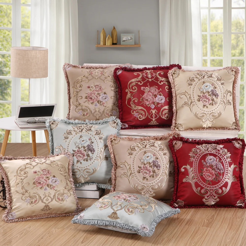 Европейские винтажные жаккардовые наволочки 45x45 см мягкие домашние декоративные наволочки 48x48 см красные цвета слоновой кости коричневые кисточки