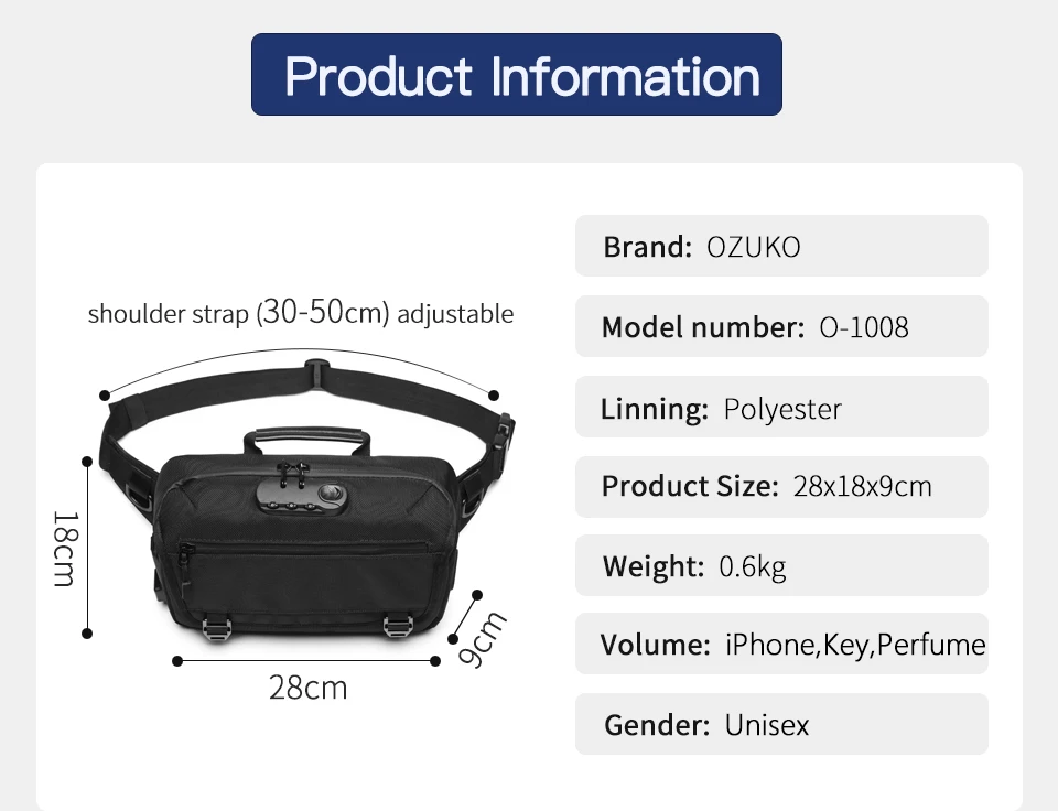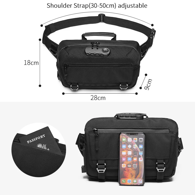 Поясная Сумка OZUKO Мужская, с защитой от кражи, повседневная, водонепроницаемая, с USB-портом для зарядки, для мобильного телефона