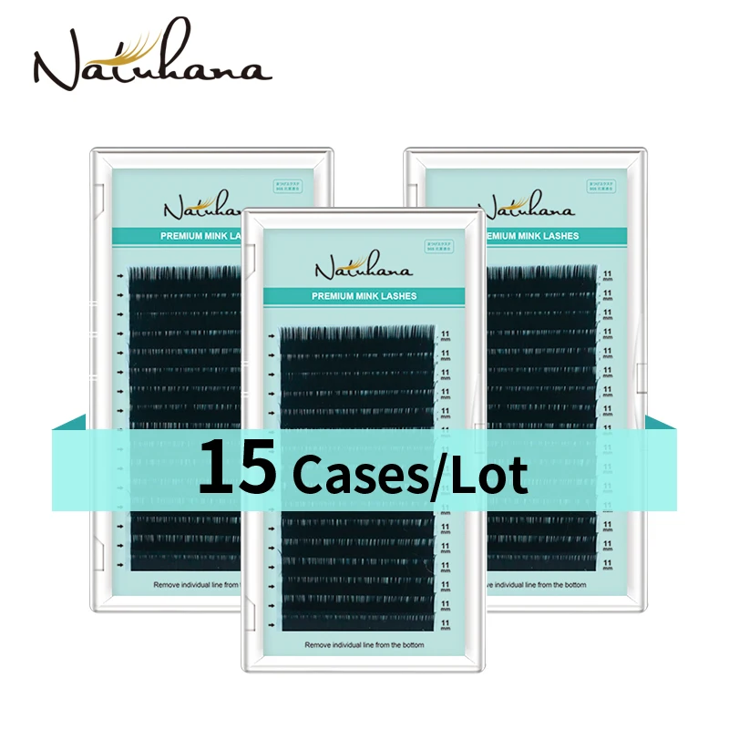 NATUHANA 15 чехлов/Лот 16 рядов ручной работы из искусственной норки наращивание ресниц Корея Pbt натуральные мягкие ресницы индивидуальное наращивание макияжа реснички