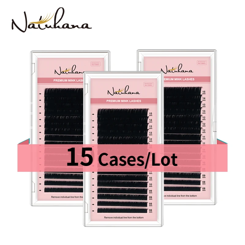 Натуральные мягкие норковые ресницы для наращивания NATUHANA, 15 пачеккомплект, 8-15 мм, Индивидуальные Накладные ресницы премиум-класса, оптом