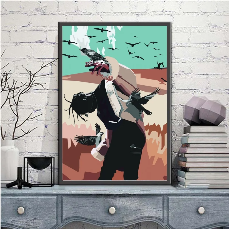 Трэвис Скотт поп-арт хип-хоп певец музыкальный певец плакат печать настенное Искусство Холст Живопись Домашний Декор холст печать (без рамки) #3
