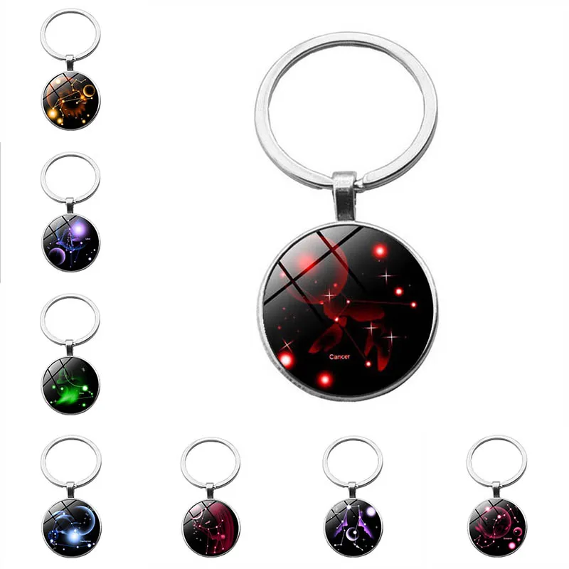 12 Созвездие Ювелирные изделия Брелки Знаки зодиака брелок кольца для ключей сумка для автомобиля круглый Portachiavi подвеска для мужчин и женщин