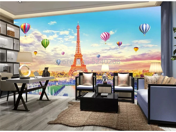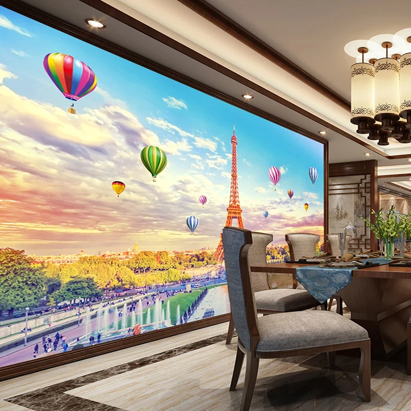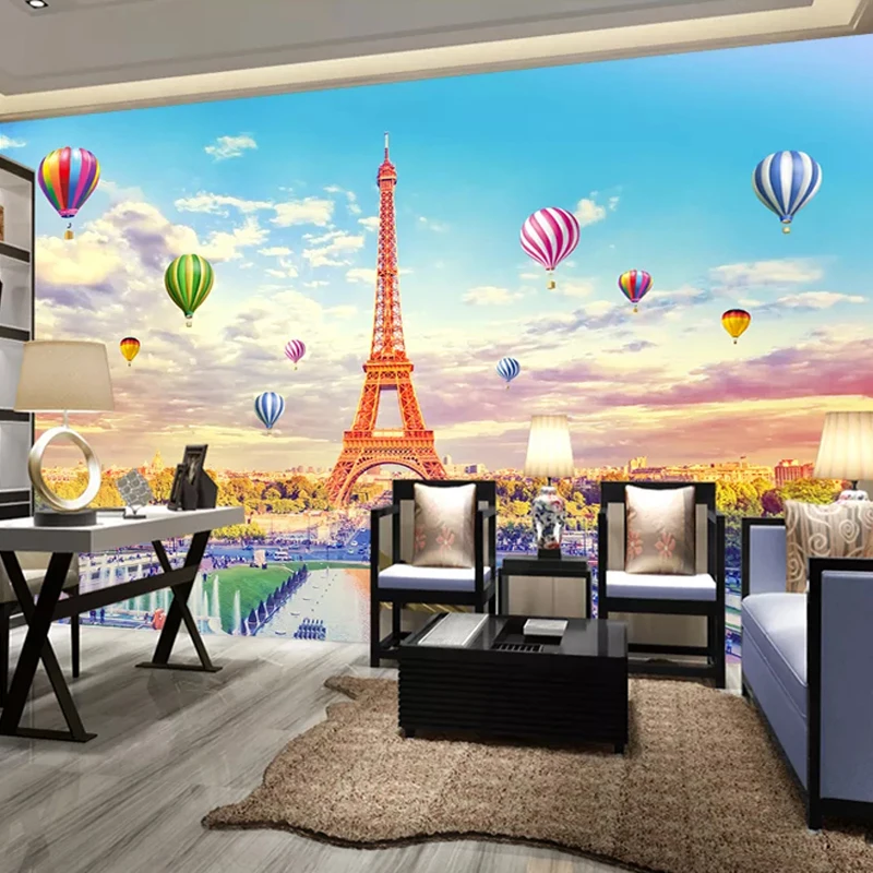 Настенные 3D обои на заказ, самоклеящиеся обои с изображением башни, пейзажа, синего неба, воздушного шара, гостиной, телевизора, ресторана