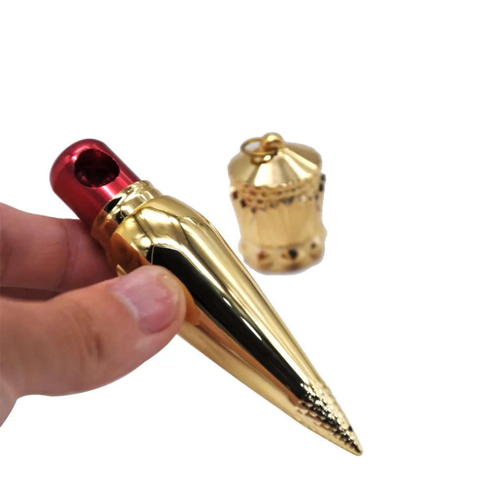Материал: алюминий и пластик (пластиковый корпус, металлическая труба внутри) Длина: 108 мм/4,25 дюйма Длина верхней чаши: 18 мм/0,71 дюйма Длина Кружева: 500 мм/19,69 дюйма Вес нетто: 33 г/шт. Цвет: золотистый (как на фото) Использование: для курения табака также ожерелье Дизайн: Корона скипетр
