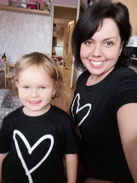 Футболка с круглым вырезом и коротким рукавом для мамы и дочки, 1 шт.