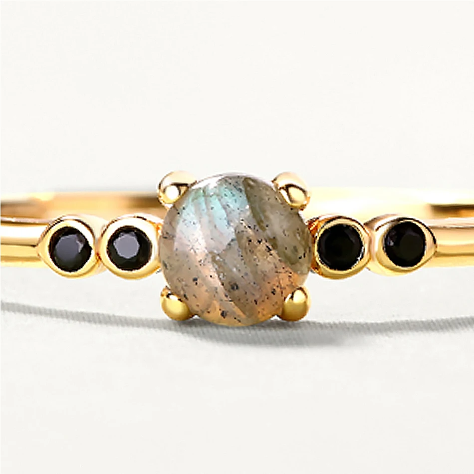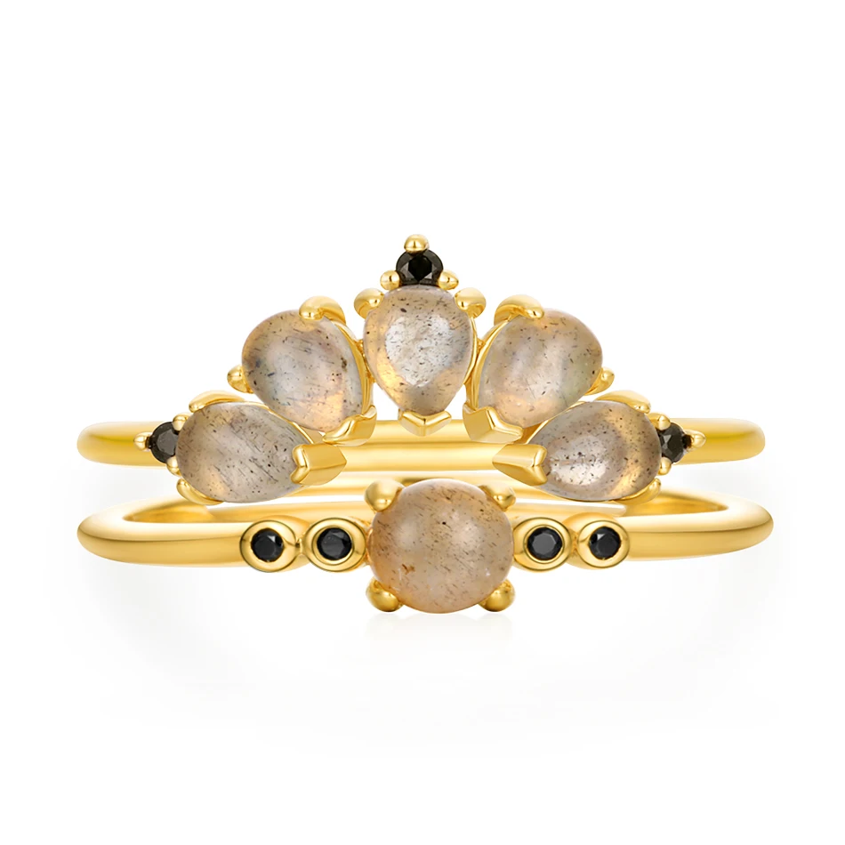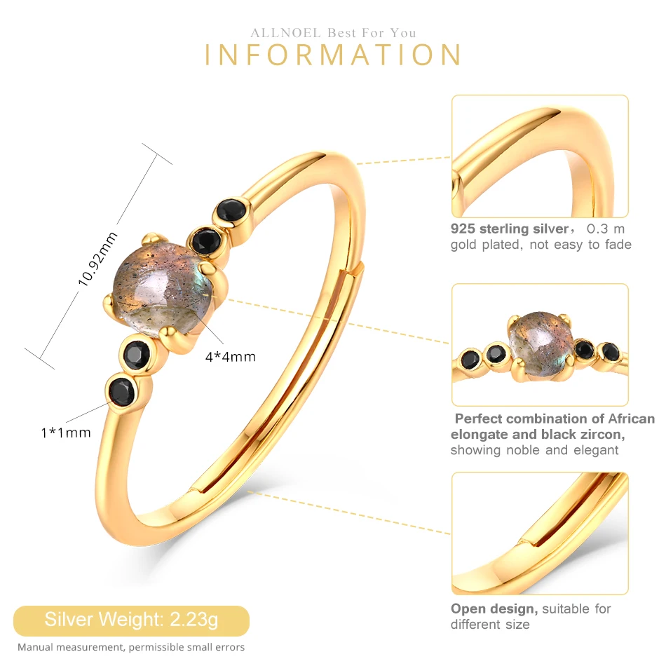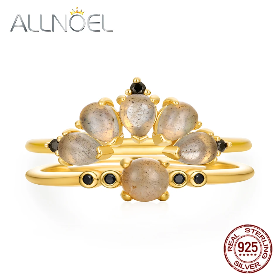 ALLNOEL серебро 925 ювелирные изделия штабелируемые кольца свадебный набор для женщин 9K позолоченный натуральный Лабрадорит Драгоценный камень модный стиль