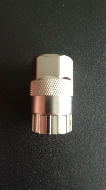 Это блестящий серебристый металл, который я получил. Металл тонкий, поэтому вы должны быть осторожны при использовании и убедиться, что инструмент подходит всем способом. Удалите гайки и прокладки, чтобы обеспечить хорошее прилегание. Я использовал трещотку 1/2 "с гнездом 24 мм плюс увеличил длину храповика, чтобы получить больше крутящего момента. Затем было очень легко использовать этот инструмент, чтобы снять кассету с 7 скоростей колеса. Надеемся, что инструмент прослужит более 1 использования, но, по крайней мере, он работает в настоящее время. Товар был доставлен быстро, благодаря хорошему реселлеру.