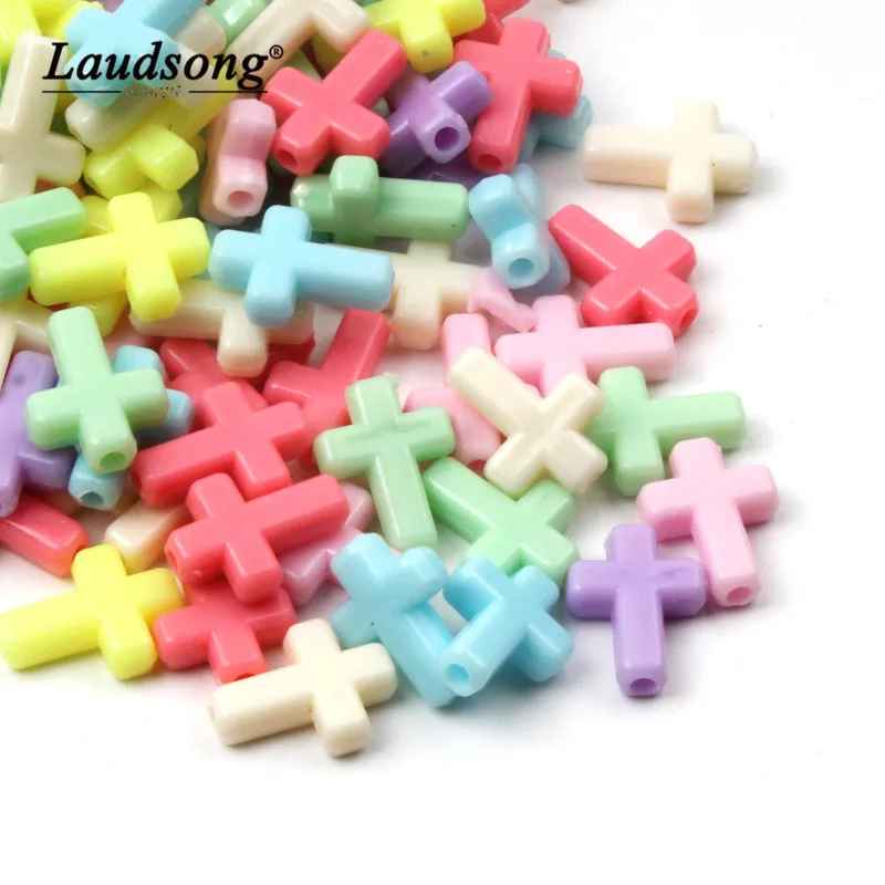 50 шт. 12x16 мм смешивания Карамельный цвет Пластик крест Форма бусины для самостоятельного изготовления Цепочки и ожерелья браслета Бисер Модные украшения для изготовления