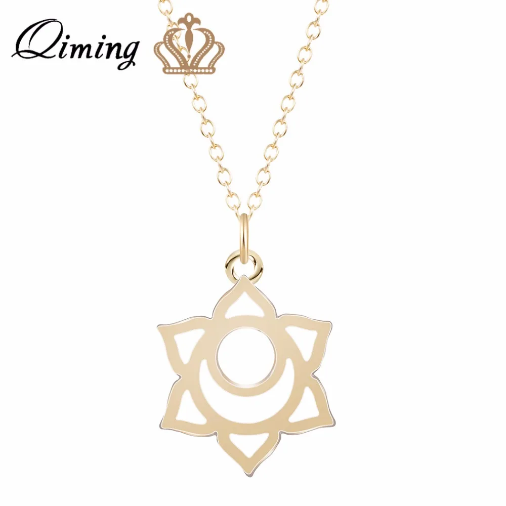 QIMING, Геометрическая подвеска, Сакральная чакра, ожерелье для женщин, Золотая модная детская бижутерия, 2-я чакра, йоги, подарки, золотое ожерелье для женщин