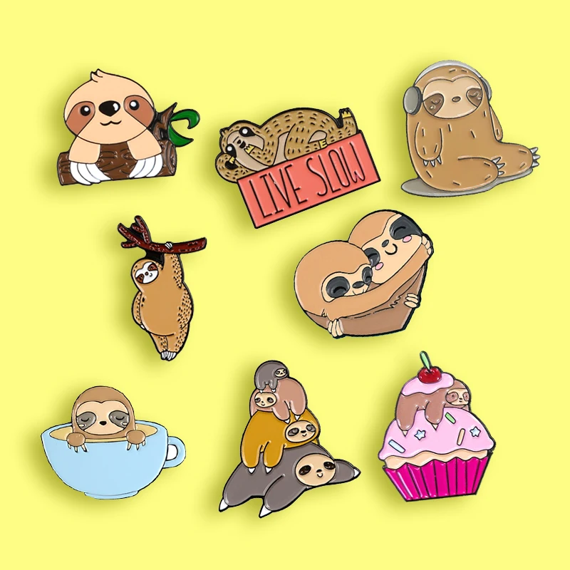 Эмалированная брошь в виде Милого Животного, Ленивец, брошь в виде медленно движущегося ленивого кружка, альпинизма, ветки дерева, украшение для торта, лацкан, рюкзак, значок, ювелирное изделие, подарок