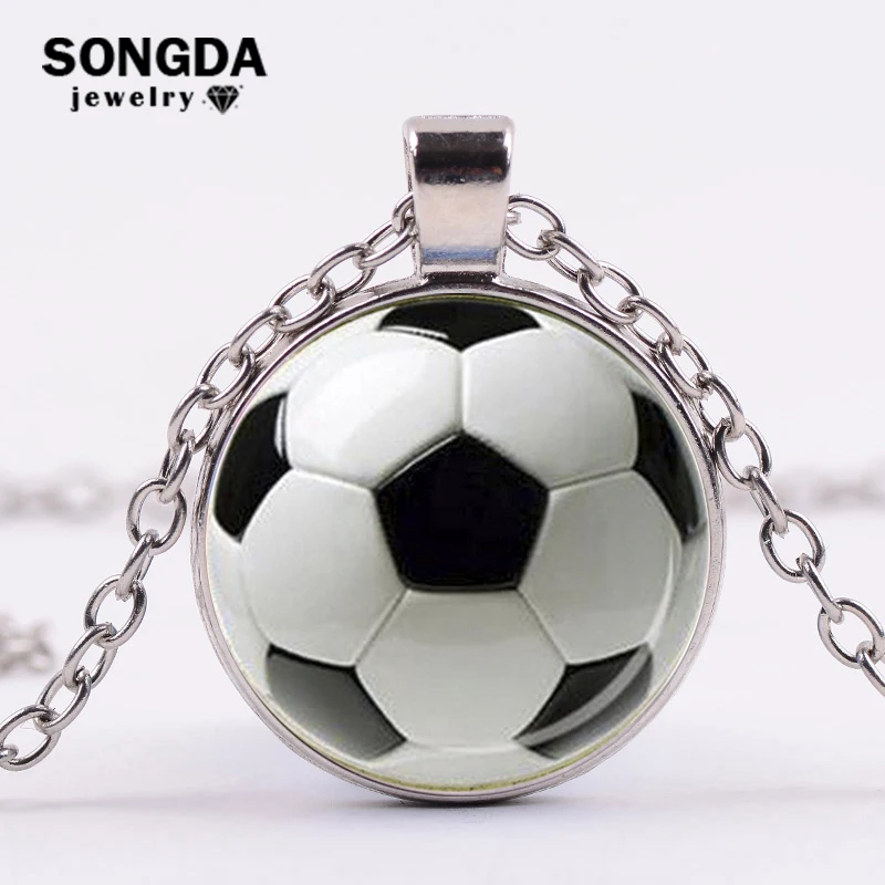 Ожерелье с кулоном со стеклянным куполом с изображением футбола, звено цепи из сплава, длинное ожерелье, идеальный подарок для мальчика, сувенир для футбольного клуба